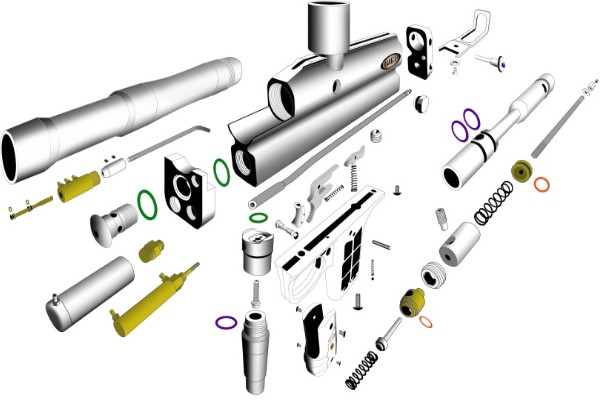 A few nifty things from Doc. Nickel Check out his Flat Top Banjo bolts, very nicely done. This cocker was destroyed to give you a better idea of how the gun works. OK, maybe a weld went bad, and the body was ruined before it was cut, but either way, it's still pretty cool.